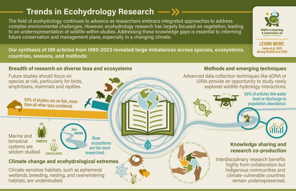 29. Jones M, Steblaj V, Schang K, Ross M, & CE Markle. 2025. Water, wildlife, and the world: A global synthesis of trends in wildlife ecohydrology research. Ecohydrology 18(7):e70122. Open access.